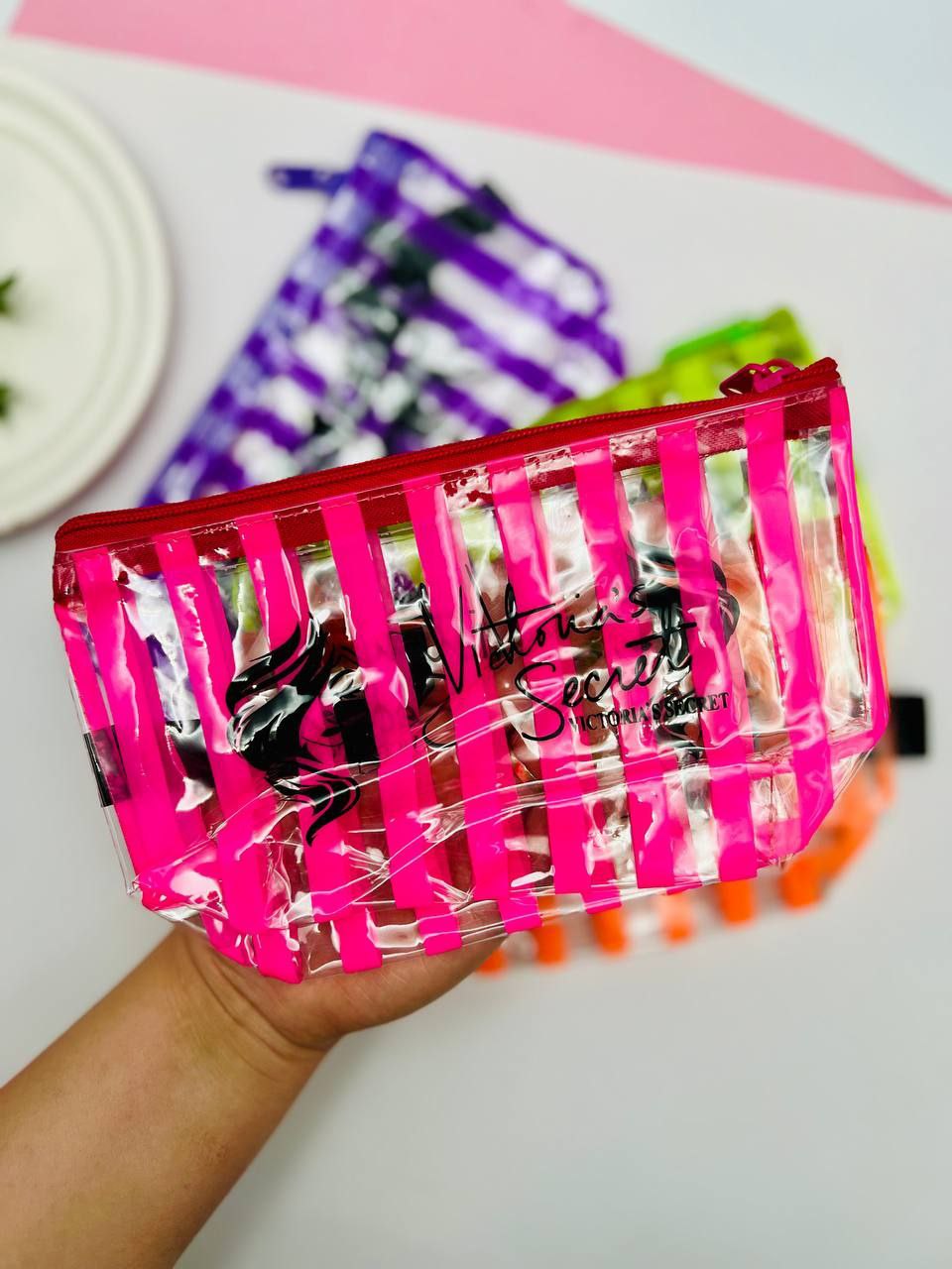 🌱 کیف آرایشی شفاف و سبک، انتخابی عالی برای سفر و استفاده روزمره.