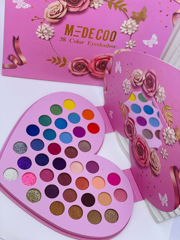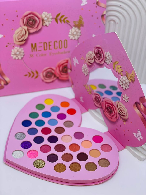 🌱 پالت سایه قلبی "MEDECOO" با ۳۸ رنگ متنوع طراحی شده است.