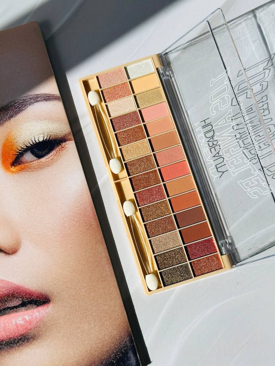 🌱 سایه ۲۸ رنگ هدا بیوتی، با طیف گستردهای از رنگها، امکان خلاقیت در آرایش را فراهم میکند.