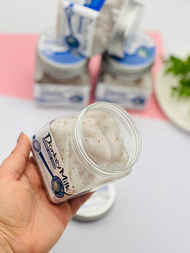 🌱 اسکراب شیر الاغ پوست را نرم و لطیف میکند.